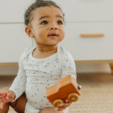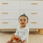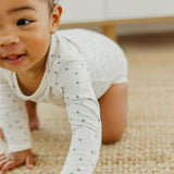 With buttery soft fabric that's gentle against baby's skin, these long sleeve bodysuits are the perfect everyday wardrobe piece. Available in trend-driven prints, they feature overlap shoulders for easy on and off. Our smaller sizes also include fold-over mittens to prevent scratching. Wear them for naptime, playtime, or anything in between!