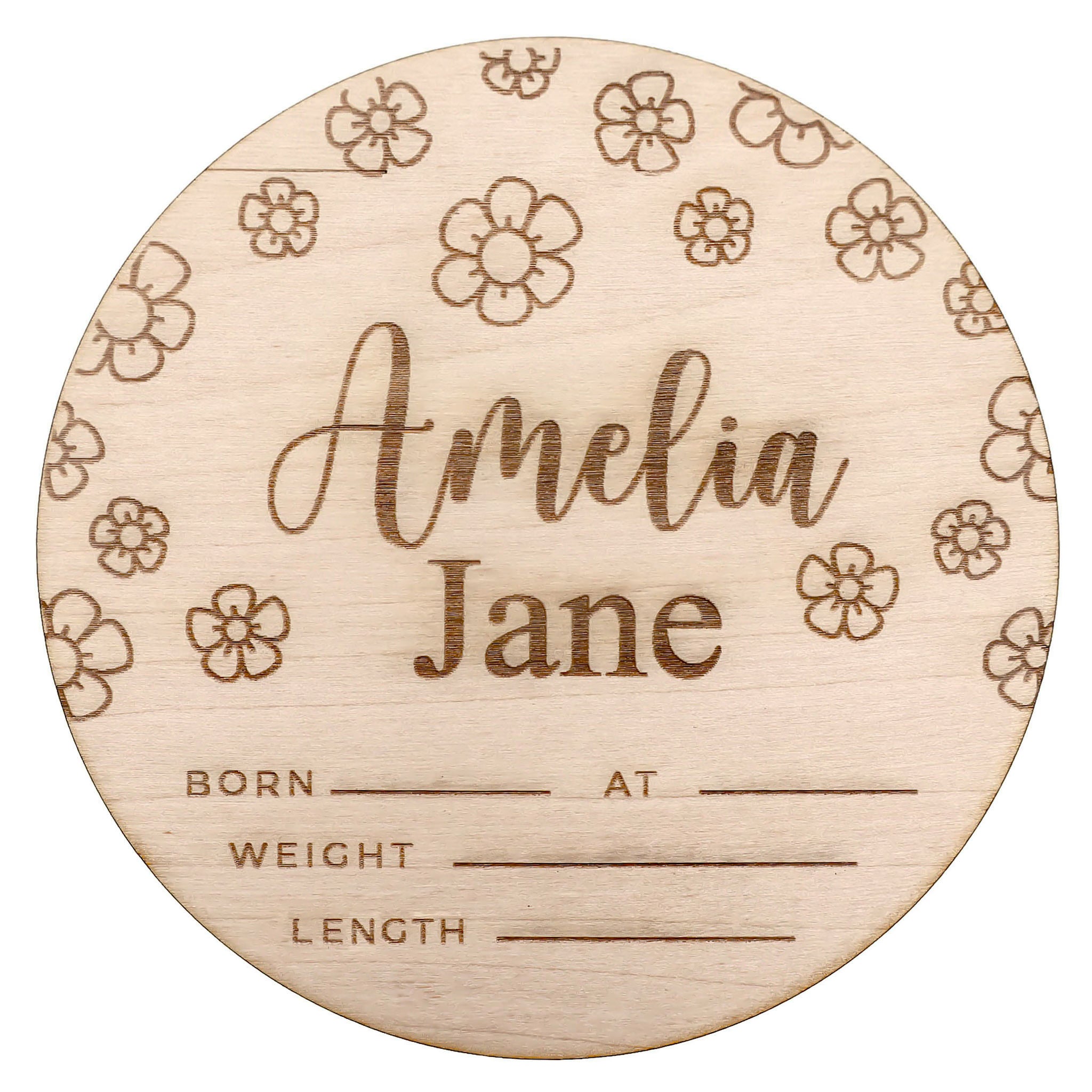 Each sign is custom-engraved with your baby's name on high-quality, unfinished birch wood for a clean, organic look—designed to last as a keepsake from your baby's very first day.