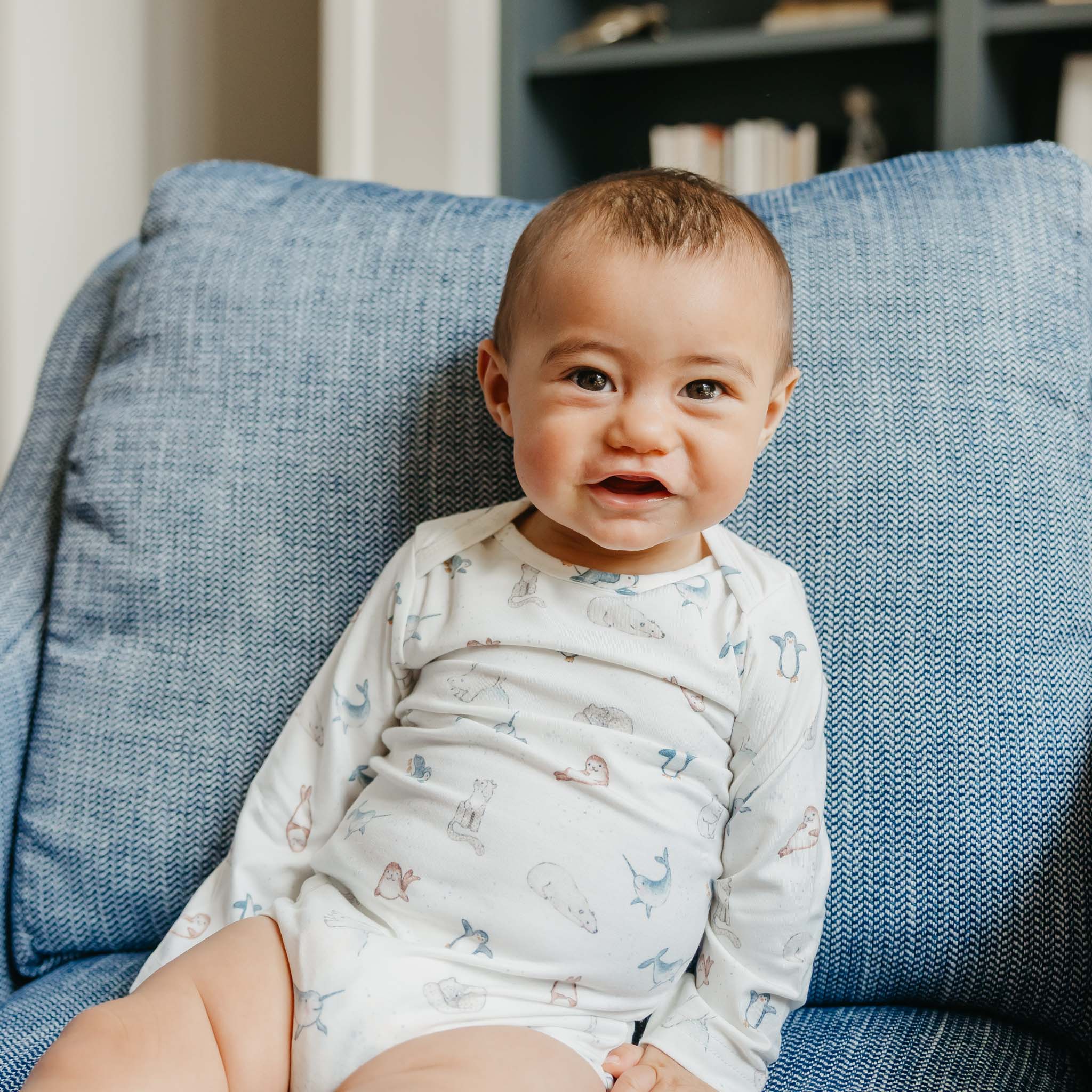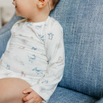 With buttery soft fabric that's gentle against baby's skin, these long sleeve bodysuits are the perfect everyday wardrobe piece. Available in trend-driven prints, they feature overlap shoulders for easy on and off. Our smaller sizes also include fold-over mittens to prevent scratching. Wear them for naptime, playtime, or anything in between!