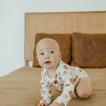 With buttery soft fabric that's gentle against baby's skin, these long sleeve bodysuits are the perfect everyday wardrobe piece. Available in trend-driven prints, they feature overlap shoulders for easy on and off. Our smaller sizes also include fold-over mittens to prevent scratching. Wear them for naptime, playtime, or anything in between!