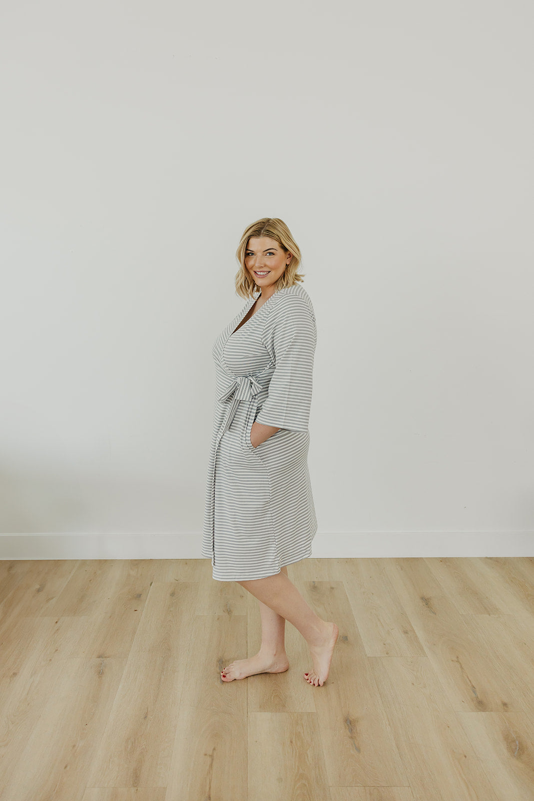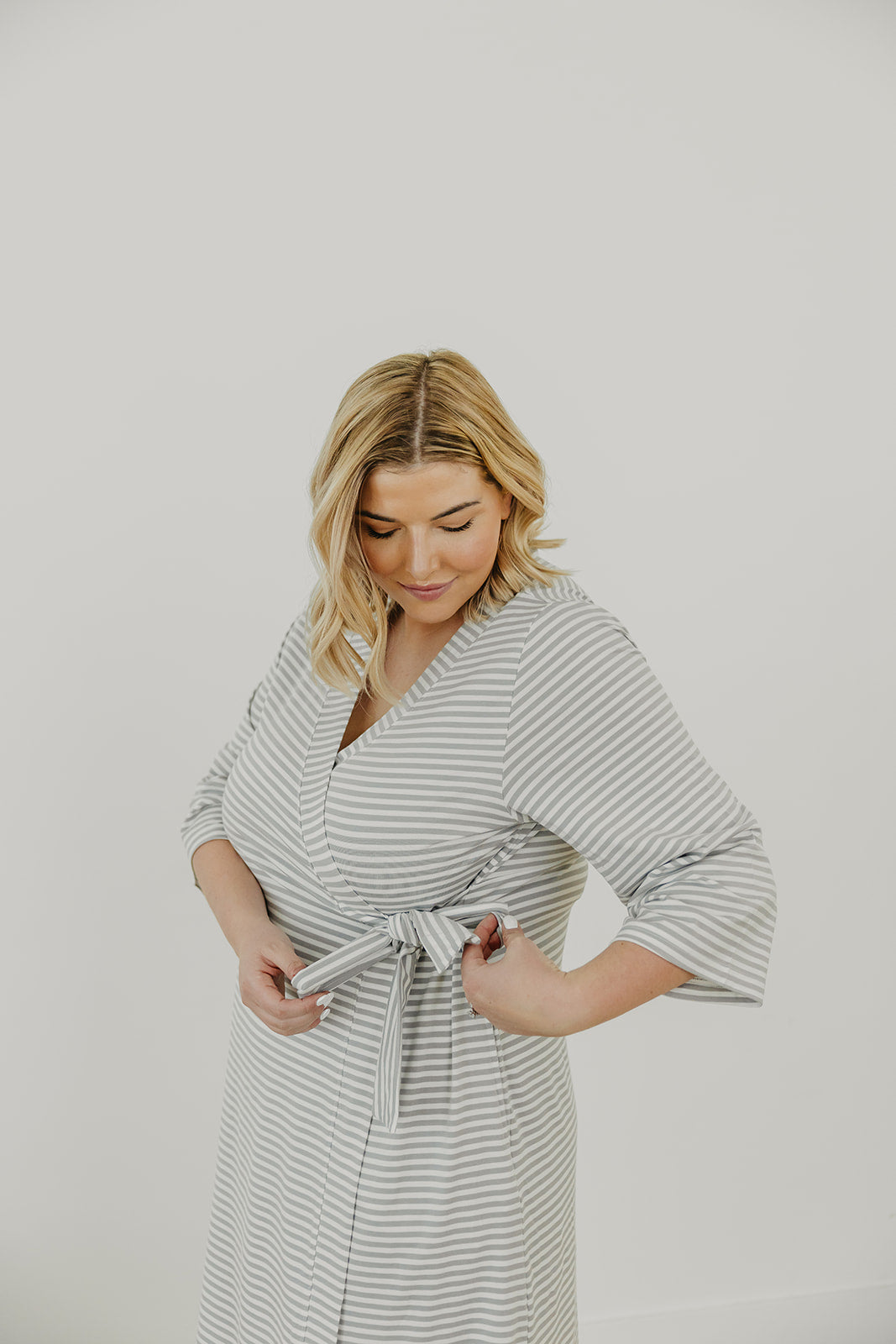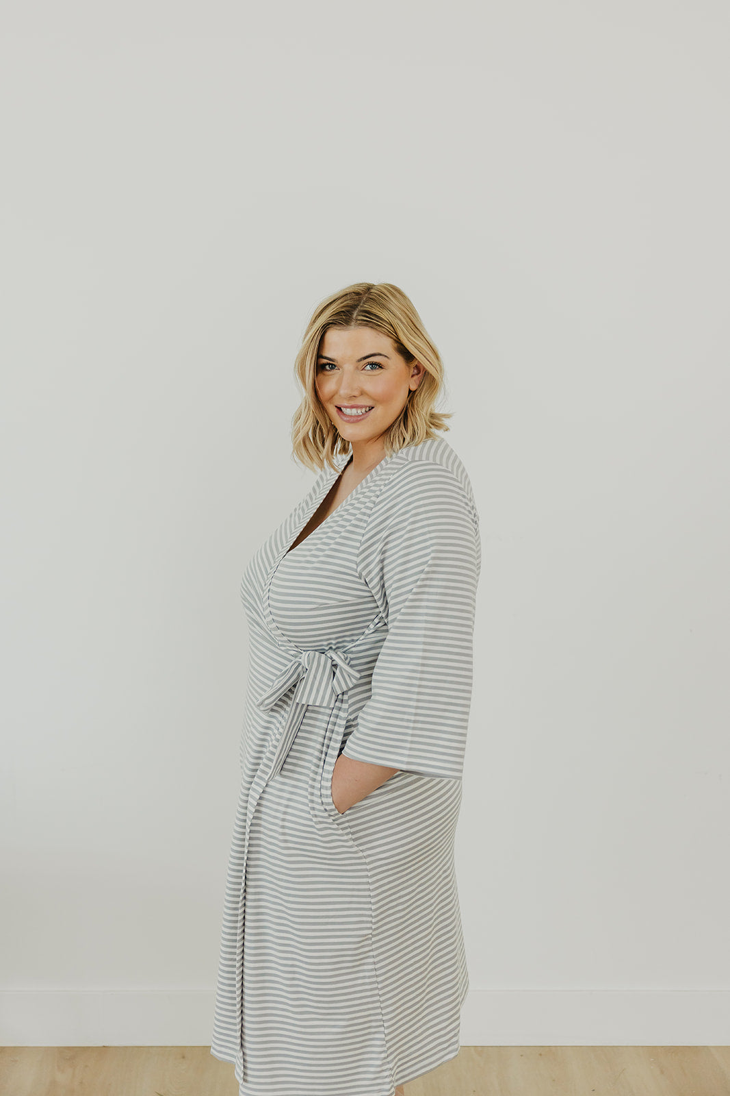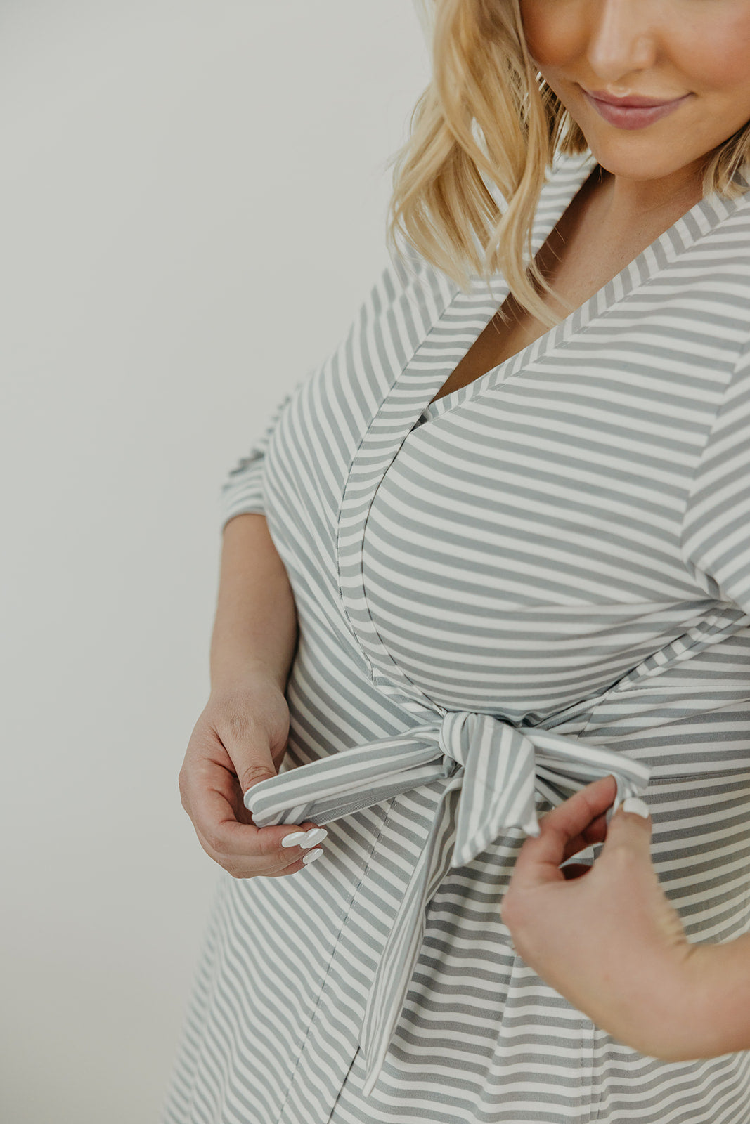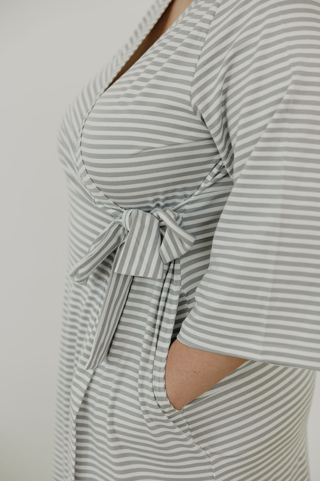 Now mom can enjoy the same buttery soft fabric that has made our swaddles a fan favorite. Featuring flowy, three-quarter sleeves, it closes with an internal tie placed a little higher up to accommodate growing bumps. (Though we know you’ll still love it once baby arrives.) You can even match with little ones for a fun mommy-and-me look.
