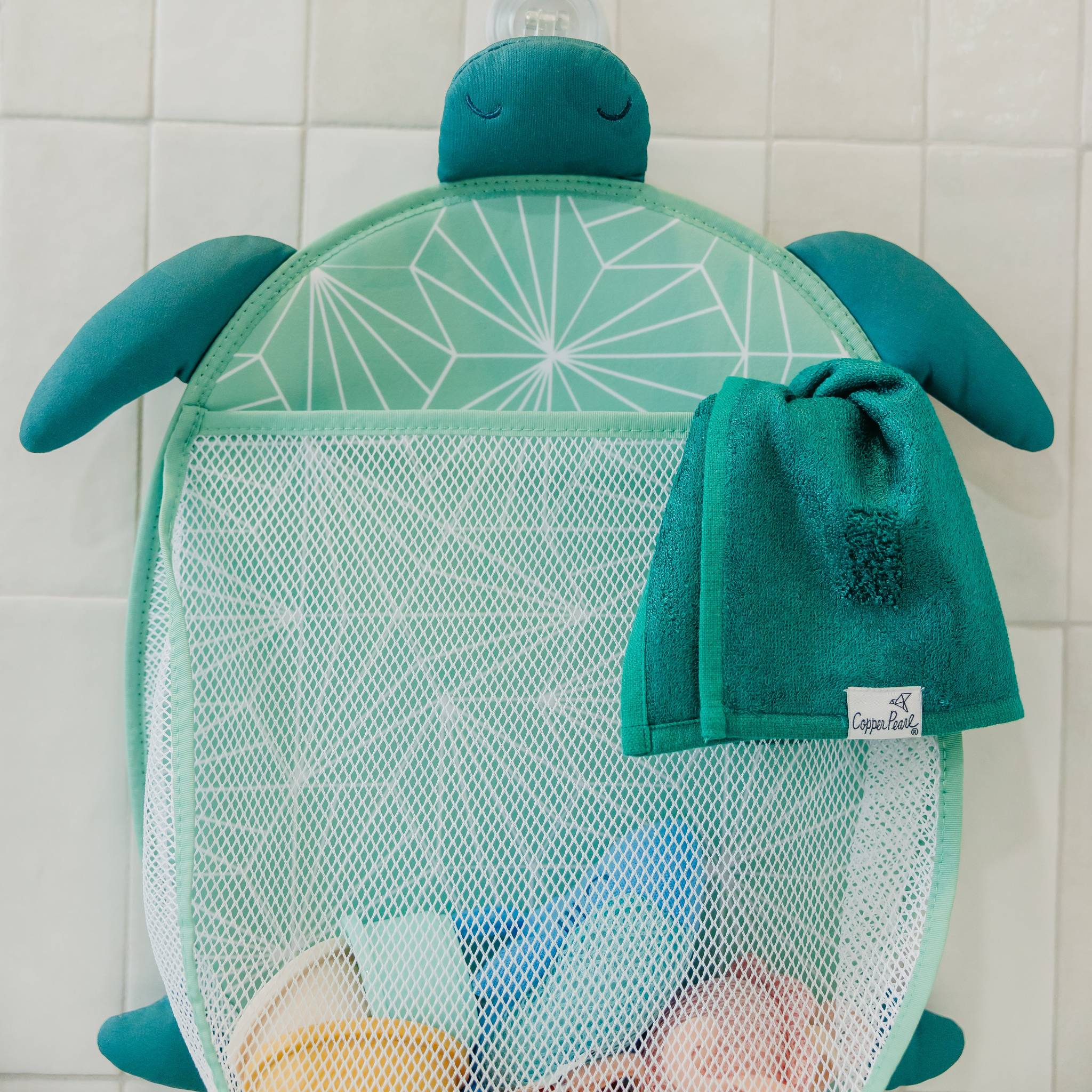 Organize your tub area to hold all your bath toys as they dry! The extra-large mesh holder helps everything dry quickly, while the flexible top opening allows for easy access.
