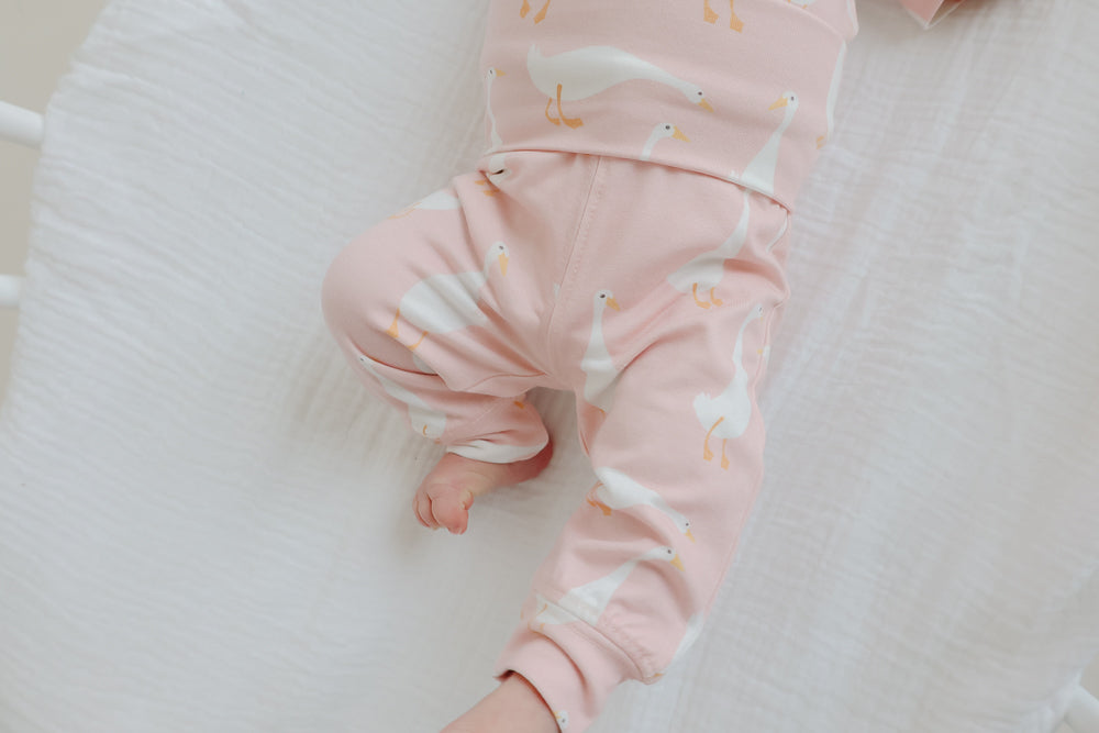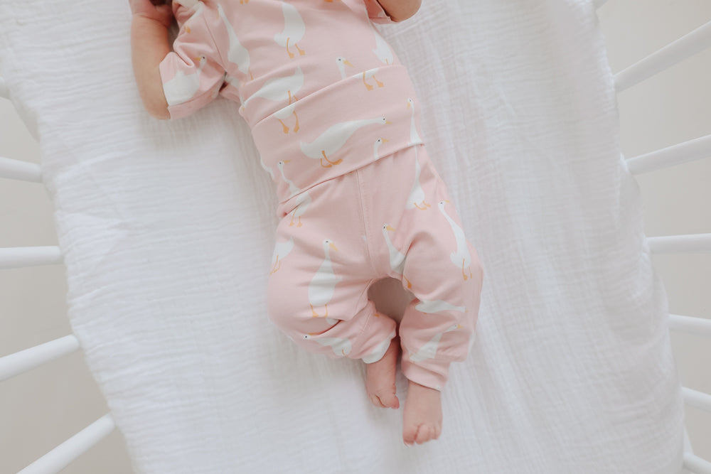 Spoiler alert: Babies grow fast in the early days. That's why these buttery soft pants are so genius! Available in a range of signature Copper Pearl prints, they allow for inevitable growth spurts. Simply adjust the fold-over waistband as baby grows-and size up in an instant!