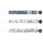 A chic way to keep baby's pacifier close at hand. Premium knit fabric strap. Stainless steel clip. Sold in Set of 3.