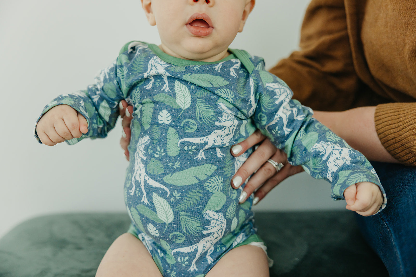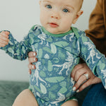 With buttery soft fabric that's gentle against baby's skin, these long sleeve bodysuits are the perfect everyday wardrobe piece. Available in trend-driven prints, they feature overlap shoulders for easy on and off. Our smaller sizes also include fold-over mittens to prevent scratching. Wear them for naptime, playtime, or anything in between!