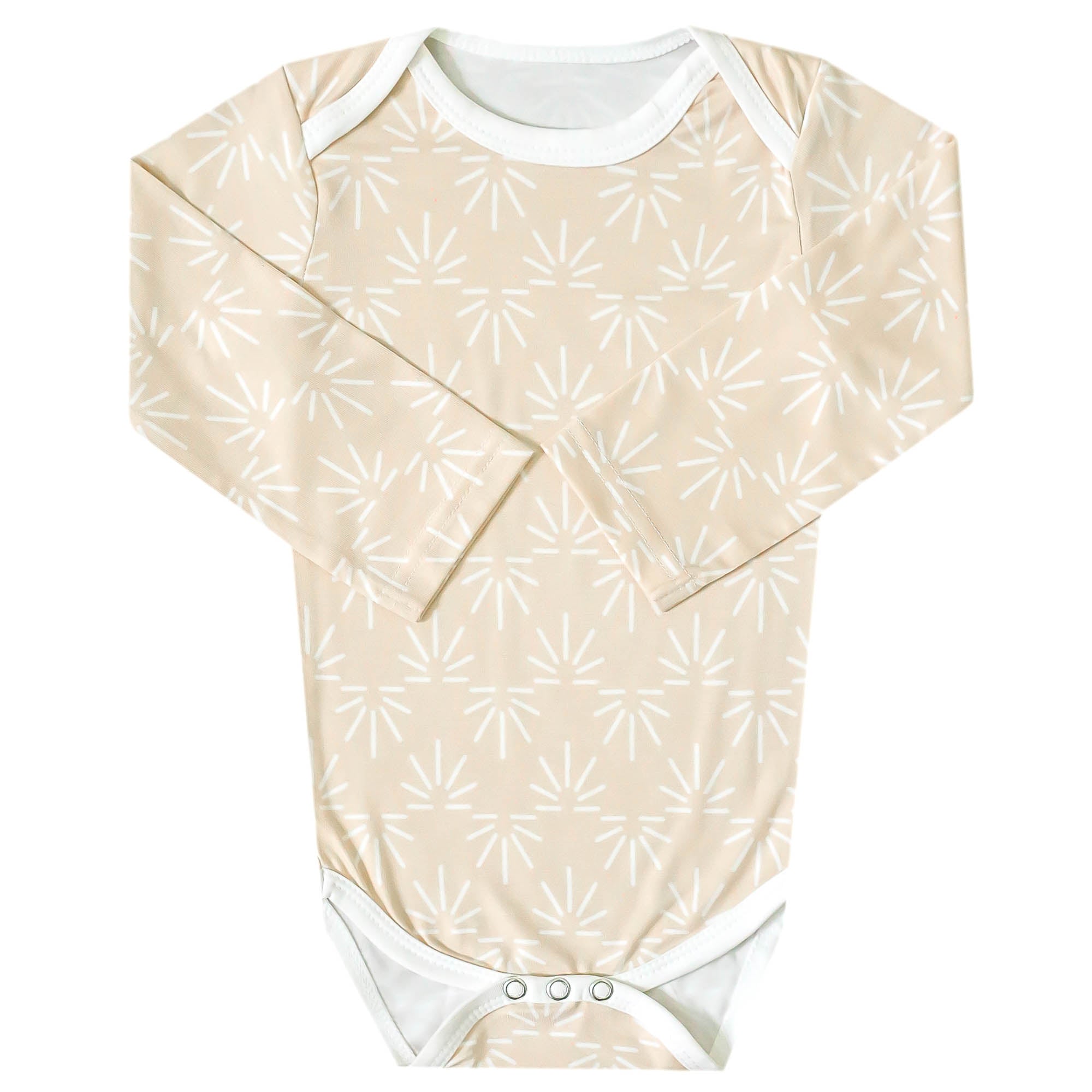 With buttery soft fabric that's gentle against baby's skin, these long sleeve bodysuits are the perfect everyday wardrobe piece. Available in trend-driven prints, they feature overlap shoulders for easy on and off. Our smaller sizes also include fold-over mittens to prevent scratching. Wear them for naptime, playtime, or anything in between!