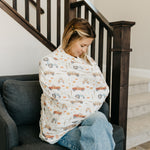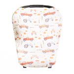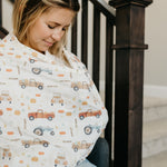 • Stretchy fabric fits most all car seats, shopping carts, high chairs and nursing mothers. It can also be a trendy infinity scarf!