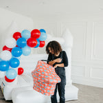 • Stretchy fabric fits most all car seats, shopping carts, high chairs and nursing mothers. It can also be a trendy infinity scarf!