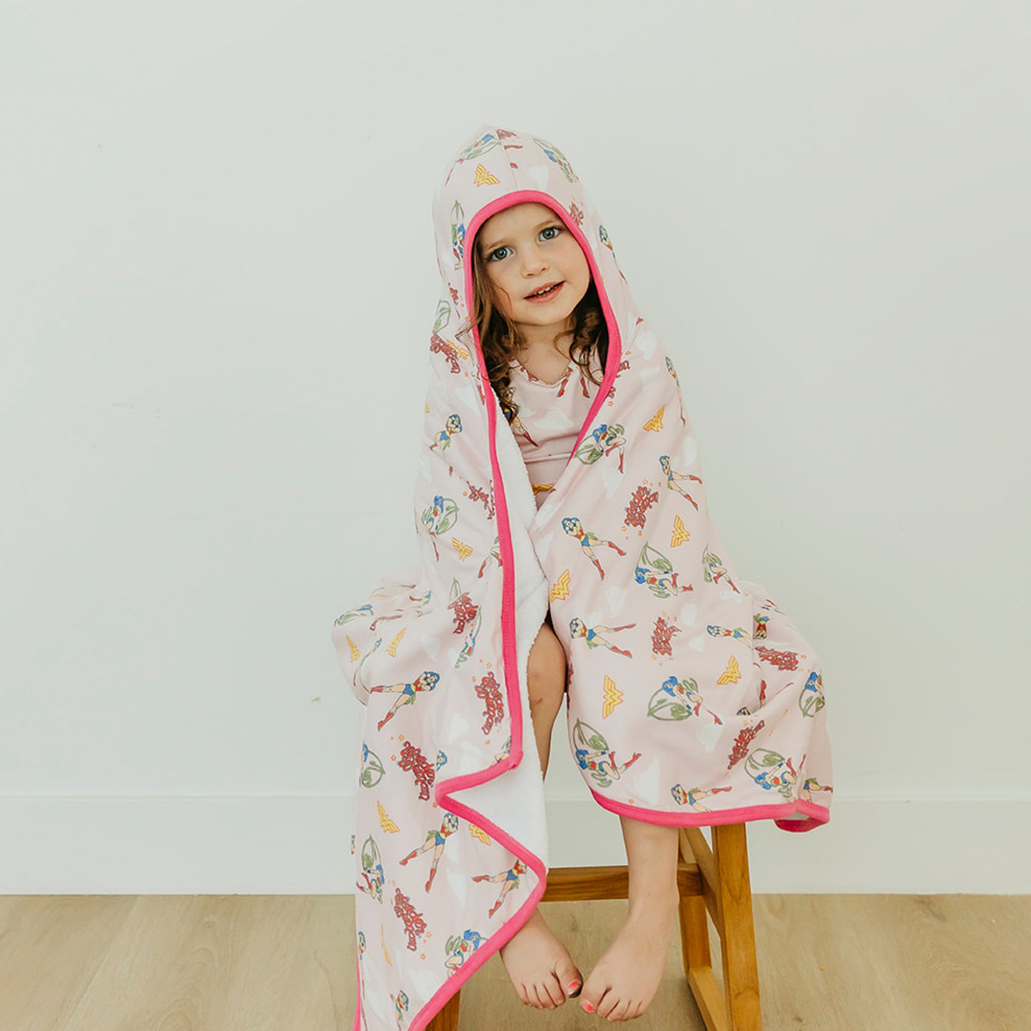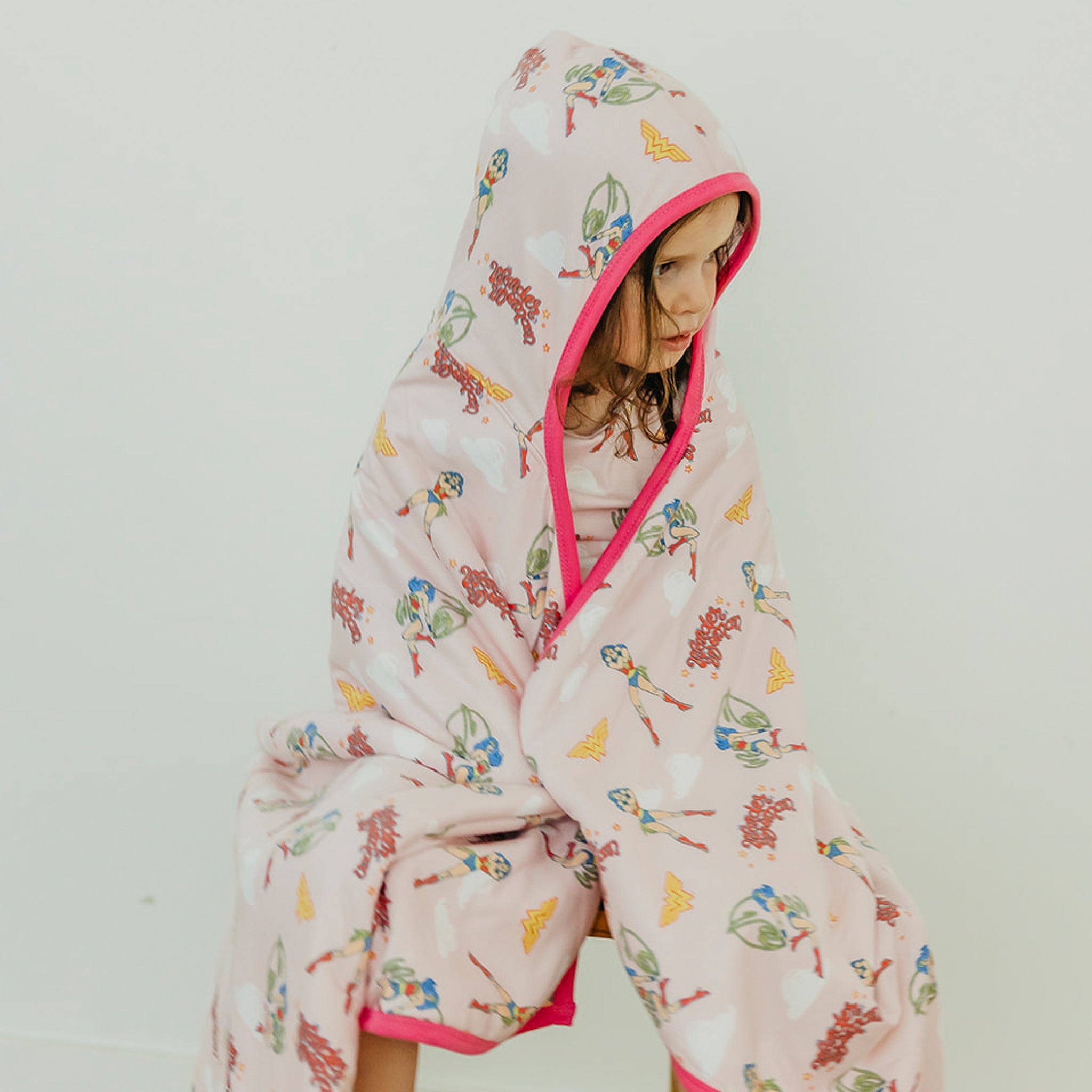 We sized up our signature hooded bath towel to bring high-absorbency coziness to kids ages 4 and up. Made of premium knit cotton and lined with terry cloth, it gets softer with each wash and features a hood and pockets for comfort and convenience.