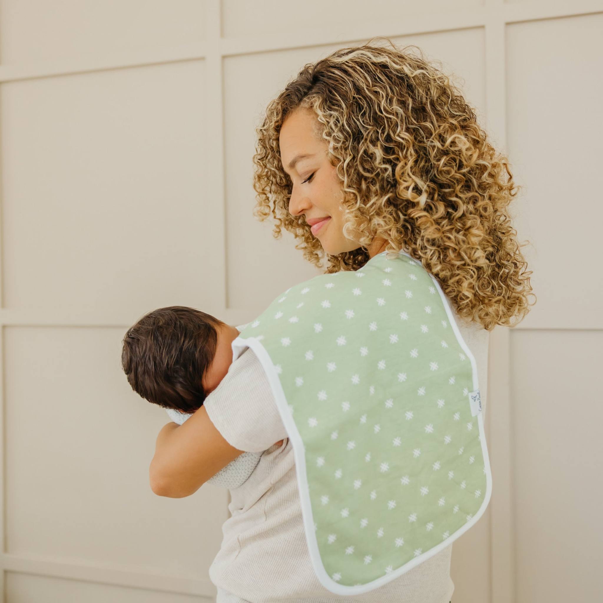 Our burp cloths come in a generous 21x10 inch size, providing greater shoulder coverage (and less outfit changes) for Mom and Dad.