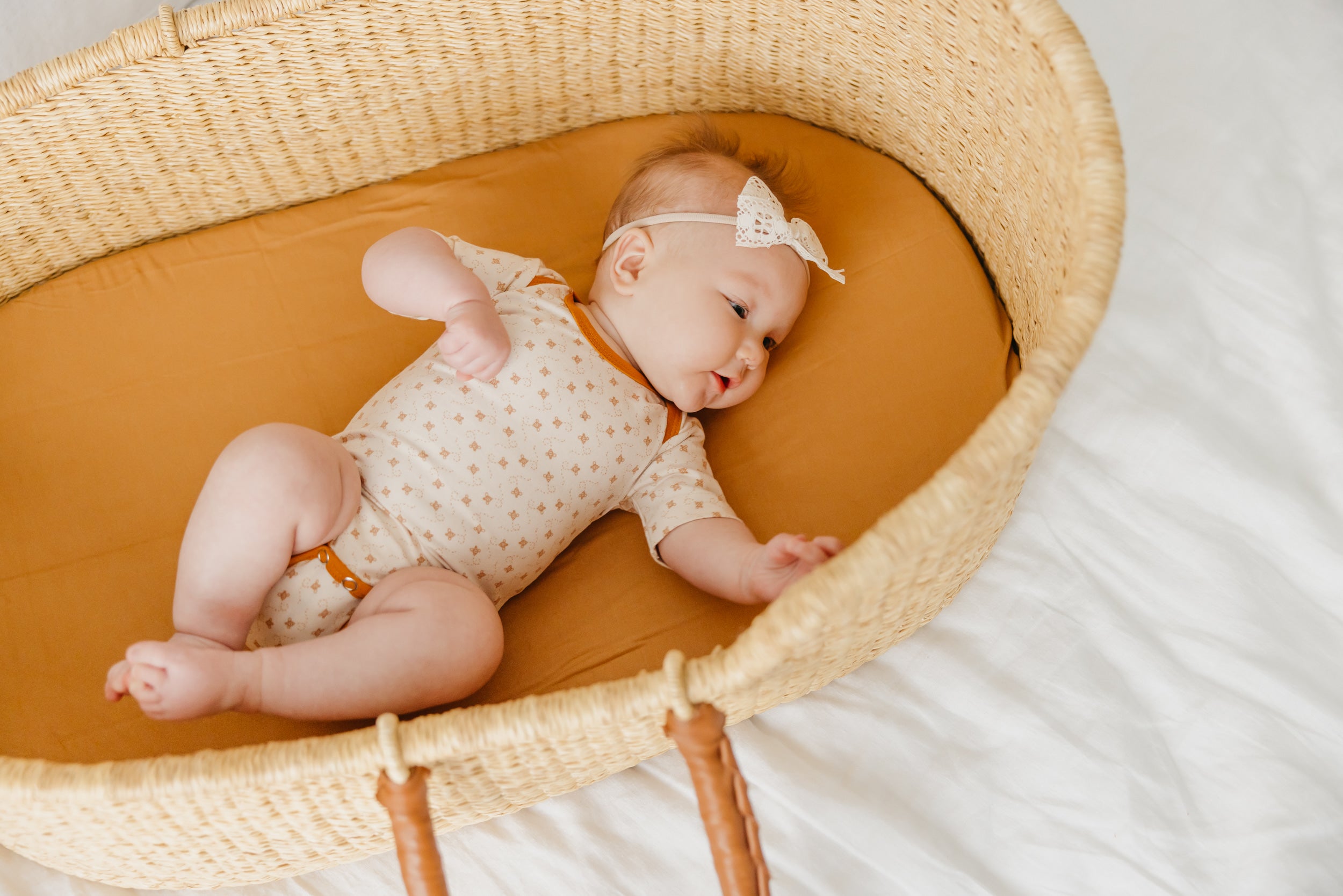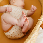 You can never have too many bodysuits. Featuring signature Copper Pearl prints and buttery soft fabric, these everyday basics feel anything but ordinary. Parents love the overlap shoulders for easy on and off.