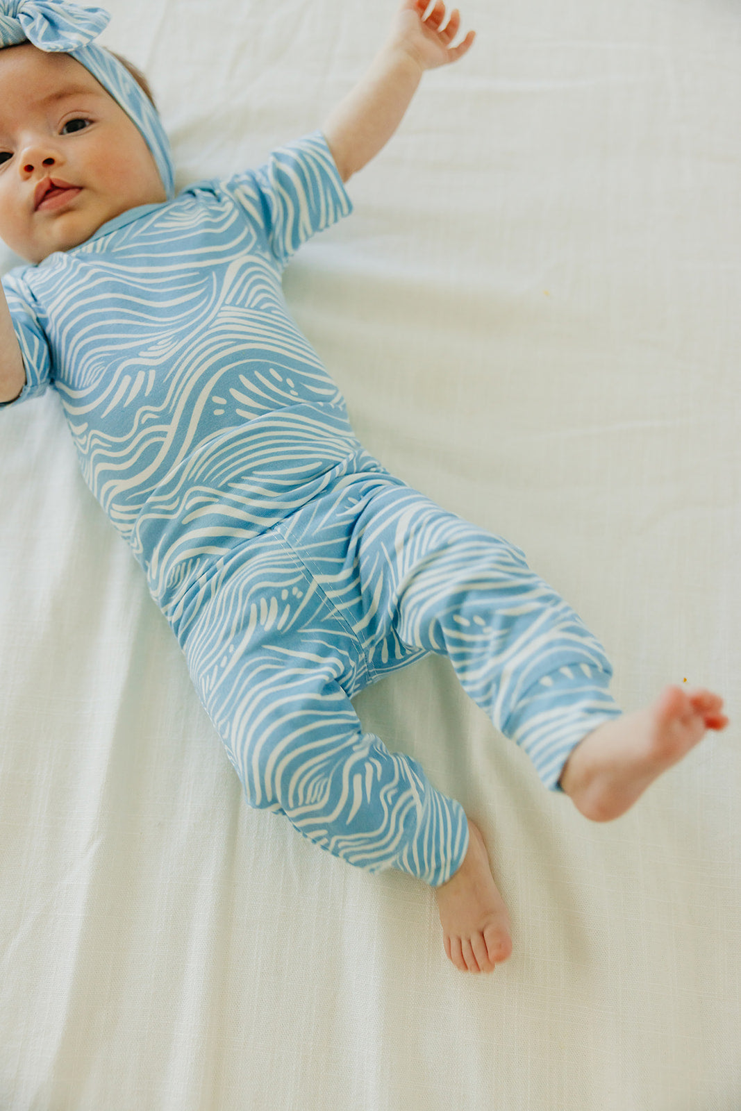 Spoiler alert: Babies grow fast in the early days. That's why these buttery soft pants are so genius! Available in a range of signature Copper Pearl prints, they allow for inevitable growth spurts. Simply adjust the fold-over waistband as baby grows-and size up in an instant!