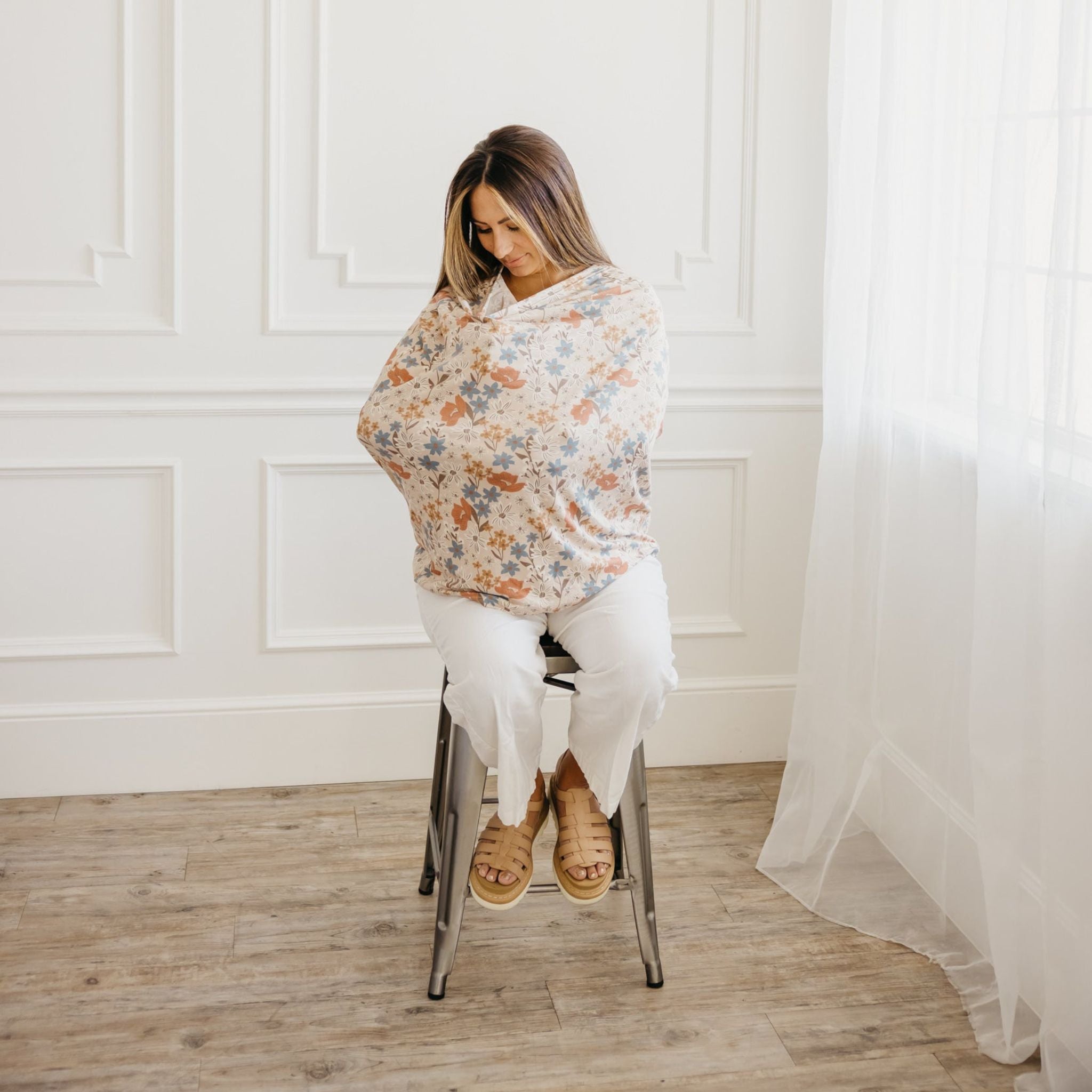 • Stretchy fabric fits most all car seats, shopping carts, high chairs and nursing mothers. It can also be a trendy infinity scarf!