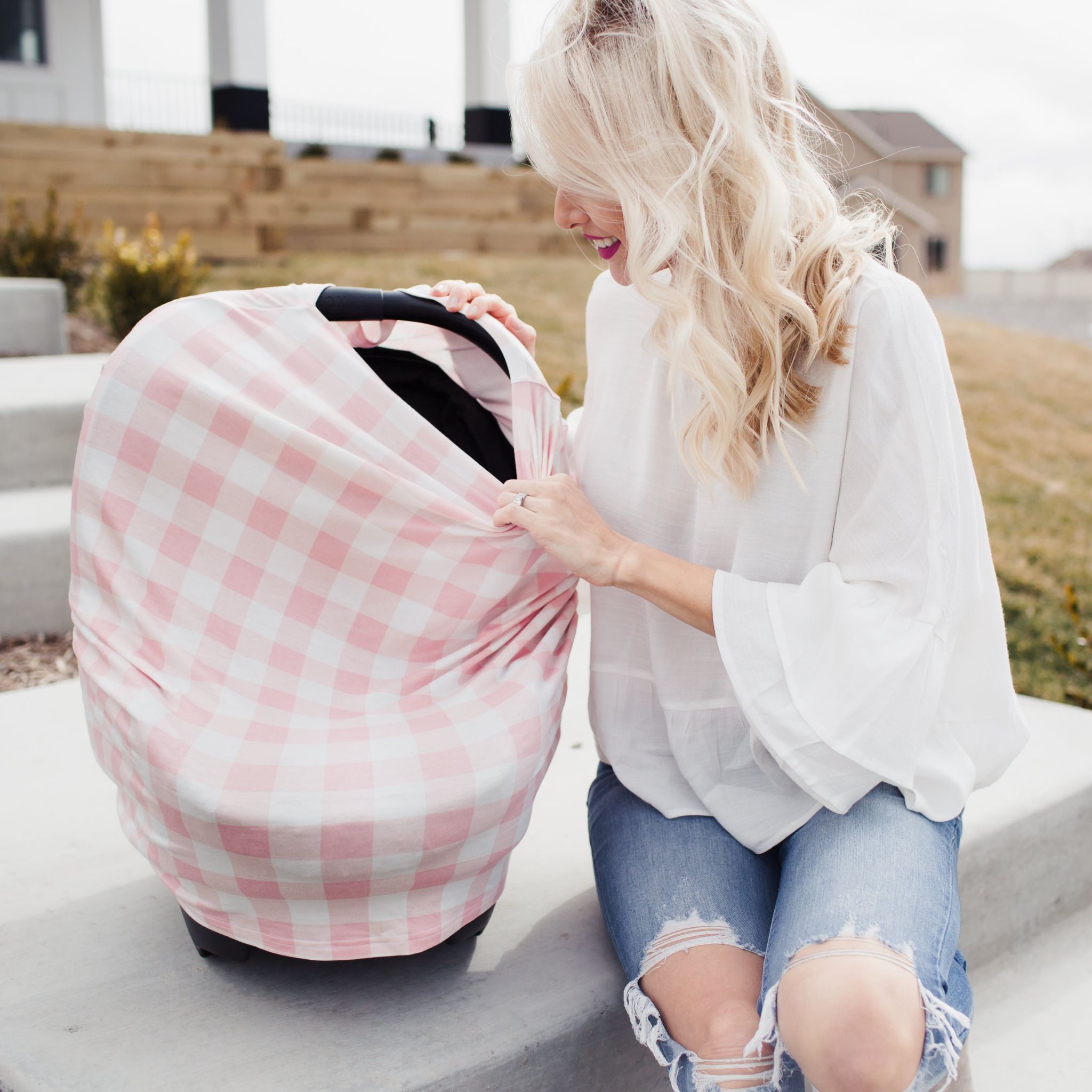 - Stretchy fabric fits most all car seats, shopping carts, high chairs and nursing mothers. It can also be a trendy infinity scarf!