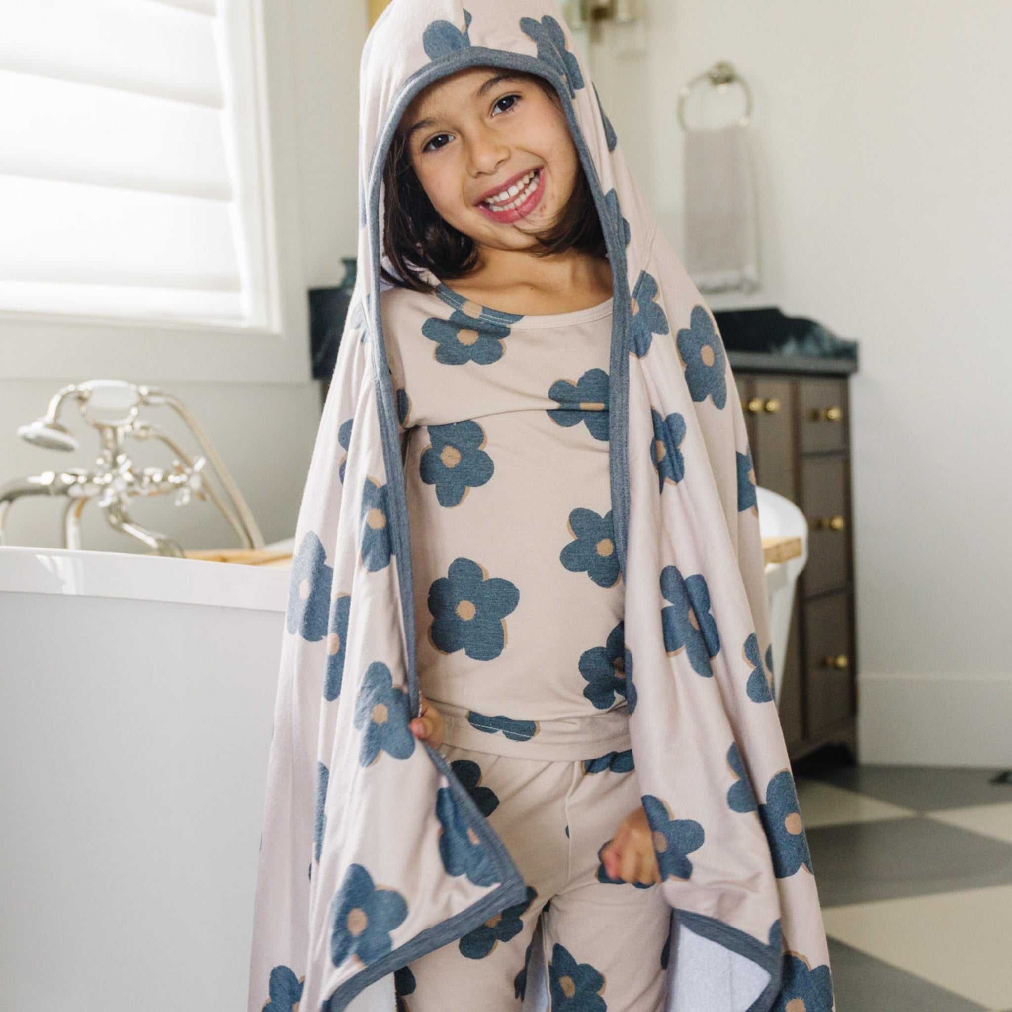 We sized up our signature hooded bath towel to bring high-absorbency coziness to kids ages 4 and up. Made of premium knit cotton and lined with terry cloth, it gets softer with each wash and features a hood and pockets for comfort and convenience.